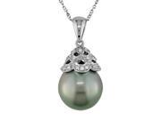 10K White Gold .06 ctw Diamond and 10-11mm Tahitian Pearl Pendant with Chain
