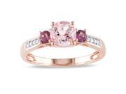 Amour 10k Rose Gold 1.05ct TGW Morganite and Pink Tourmaline with 0.05ct TDW Three Stone Diamond Ring - G-H, I1-I2