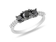 Sterling Silver 1 Carat T.W. 3-Stone Black and White Diamond Ring